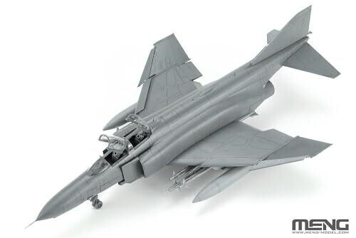 A detailed 1:48 scale F-4E Phantom II model by Meng Model. Multicoloured parts, meticulous moulding, and comprehensive assembly guidance for a professional-looking display piece suited for experienced hobbyists and collectors.