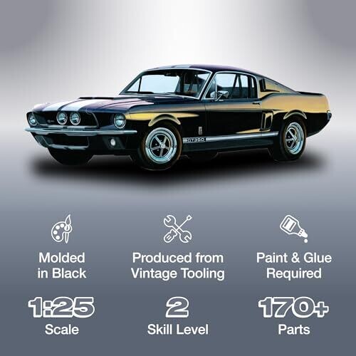 • Set Contains: 1 x Model Kit, along with all necessary components to assemble a faithful 1967 Shelby GT350 replica.