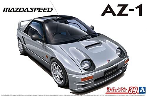 This Aoshima 1/24 scale plastic model kit recreates the Mazdaspeed PG6SA AZ-1 from 1992, offering detailed parts, authentic markings, and precise assembly for hobbyists and Mazda fans. Includes decal options and clear parts for a faithful finish.