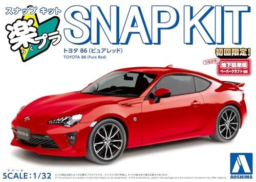 Experience the Toyota 86 in Pure Red with this 1:32 snap-kit from Aoshima. Color-matching plastic and snap-in parts require no glue, delivering a glossy finish. A compact 27-part kit includes a bonus Connecting! Underground Parking Diorama paper craft.