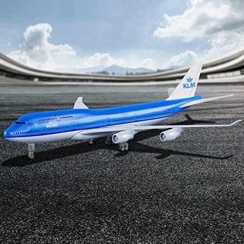 • Immerse yourself in aviation elegance with Busyflies’ meticulously designed 1:300 KLM Dutch Royal Boeing 747 diecast model.