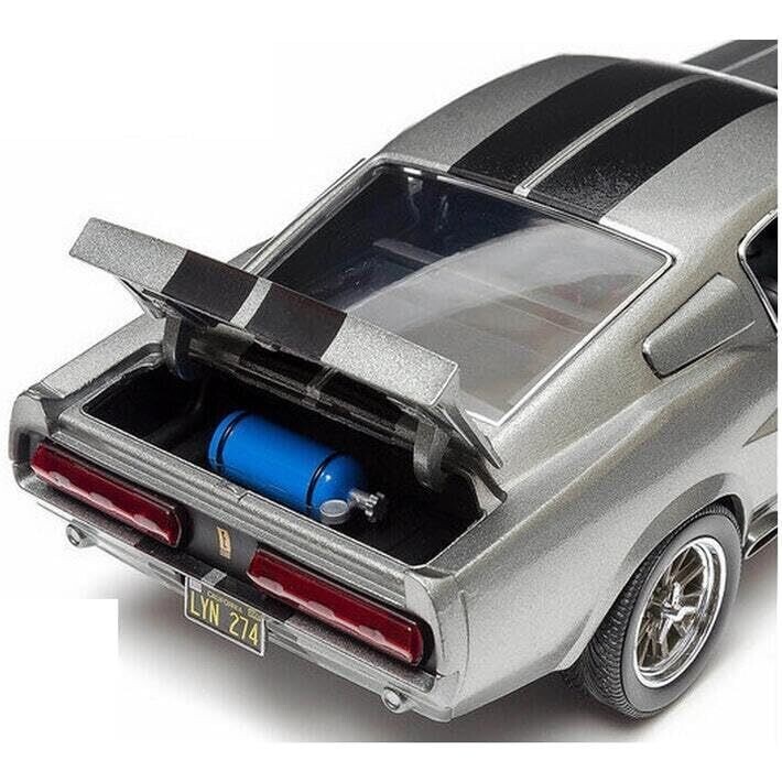 A 1:18 scale die-cast replica of the iconic 1967 Ford Mustang Eleanor from Gone in 60 Seconds. Grey/Black finish with precise detailing, built for shelf display and gifting, durable construction, and centerpiece appeal for collectors.