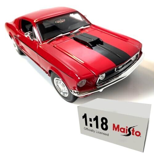 Maisto 1:18 ford Mustang 1968 GT Cobra Jet Diecast – Red, official Licensed