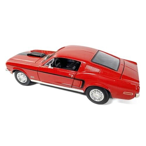 - Officially licensed diecast model capturing the iconic 1968 Mustang GT Cobra Jet in bold red finish.