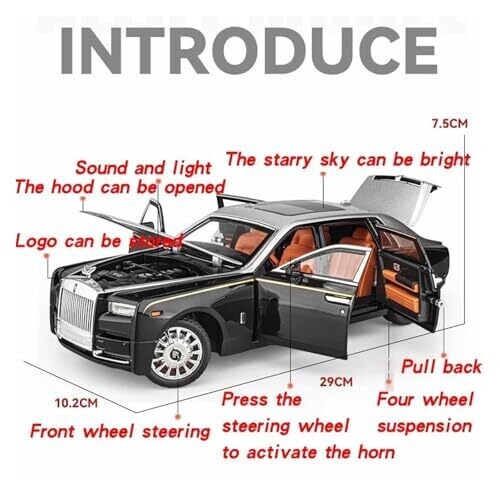 • Lift your collection with the Scale Finished Model Car 1:18, a striking replica of the Rolls Royce Phantom in pristine white that commands attention on display shelves and mantels.