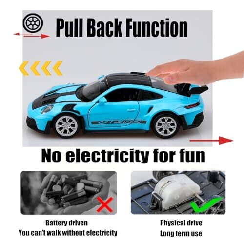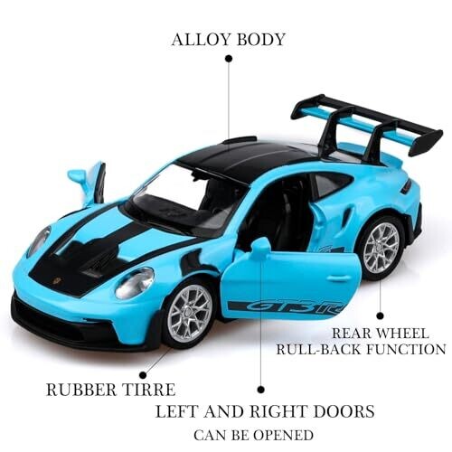 TOKAXI 1/36 scale Porsche 911 GT3 RS diecast car models feature pull-back action for easy play, detailed interiors and exterior trim, and a compact size ideal for kids and collectors. A great gift for boys and girls.