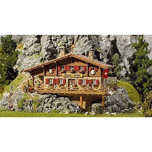 Enhance your HO layout with the Faller 130329 Moser Chalet Kit—crafted for detail and display. High-quality plastic delivers crisp textures, blending with other scenery for a charming, authentic Swiss chalet on your miniature railway.
