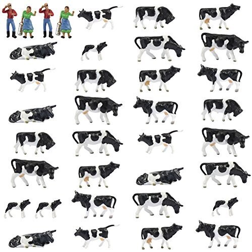 • Includes 32 lifelike cows in 8 poses and 4 painted figures in 2 poses, all crafted in vivid black-and-white to complement any layout.