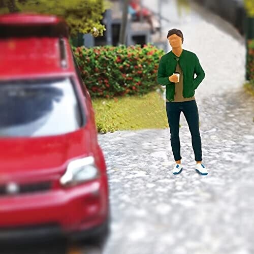 Enhance miniature worlds with a lifelike 1:64 figure that fits street, train, and office dioramas. Realistic, color-safe, and odor-free for safe display, the figure pairs with 1:64 landscapes and model kits, adding personality to desks and shelves.