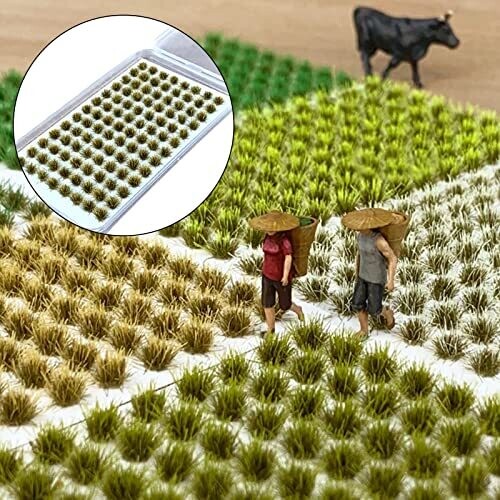 Vibrant yellow-green grass tufts add realistic texture to miniature layouts. DIY-friendly decoration with 104 resin pieces, lightweight and easy to place. Perfect for railroad scenery, dioramas, sand tables, and micro-landscape projects.