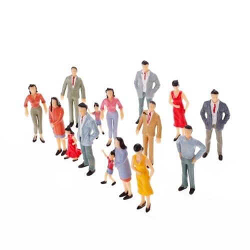 Hundreds of painted passenger figures for N scale layouts. This LuDa set includes diverse male and female poses, ready to place on stations, platforms, streets, and landscapes. Lightweight plastic, 8–11 mm tall, with vibrant multicolor finishes for realistic crowds.