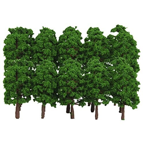 This pack includes 40 HO scale model trees (about 8 cm tall) to enhance dioramas and model train layouts. Ideal for adding depth and realistic greenery to 1/150 scale landscapes, with versatile use in modular layouts and scenic accents.