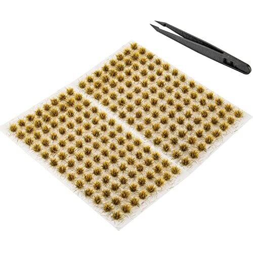 • includes tweezers for handling; apply glue to the landscape base and place the grass tufts in position