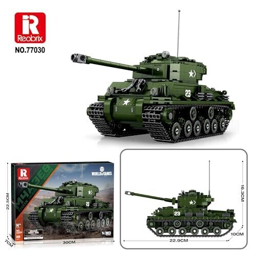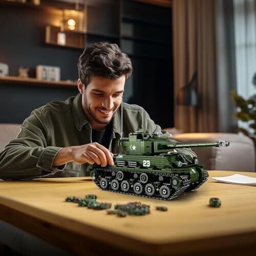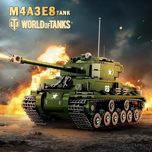 This highly detailed 1:30 scale Sherman M4A3E8 tank kit uses 836 pieces for display and interactive play. Officially licensed by World of Tanks, it offers authentic branding, premium parts, and realistic detailing for collectors and hobbyists.