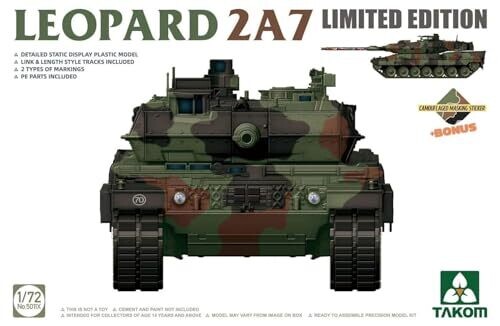• Takom 1/72 Scale Leopard 2A7 Main Battle Tank Limited Edition Model Kit — a premium, highly detailed build for display and collection.