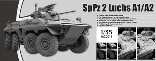 Premium 1/35 scale plastic model of the Bundeswehr SpPz 2 Luchs with 2-in-1 A1/A2 design. Build either variant for dioramas or display, with authentic detailing, accessible assembly, and flexible, rewarding options for hobbyists of all levels.