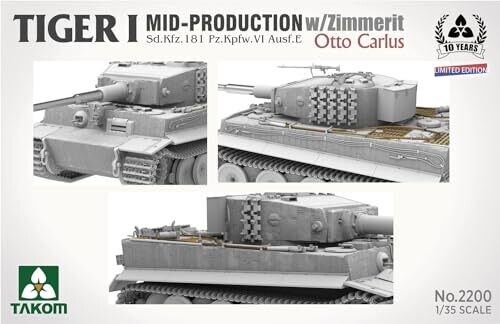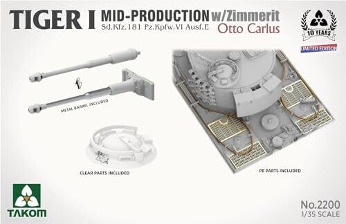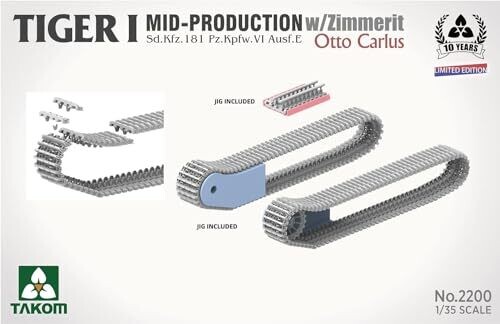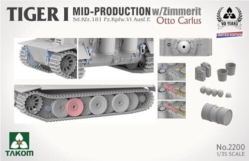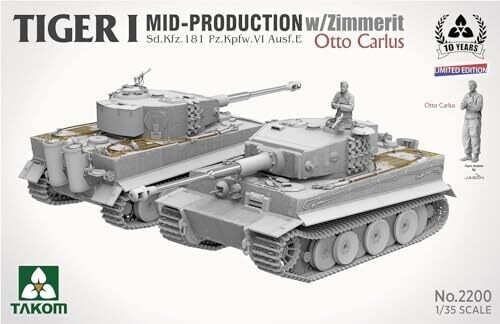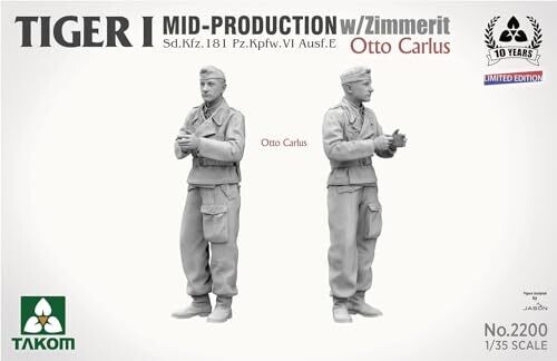 • TAKOM TAK2200 Tiger I MID-Production with Zimmerit Pz.Kpfw.VI Otto Carius with Figure - a premium 1:35 scale model kit for enthusiasts.