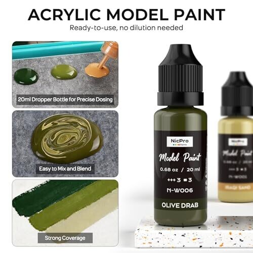 Nicpro WWII U.s. Model Paint Set, 10 Colors – Ready Acrylics for Tanks & Infantry