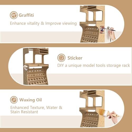 • Combines storage for tools (sharp files, tweezers, scissors, brushes, sponge sandpaper, etc.) with a dedicated paint rack to keep a clean, efficient workbench.