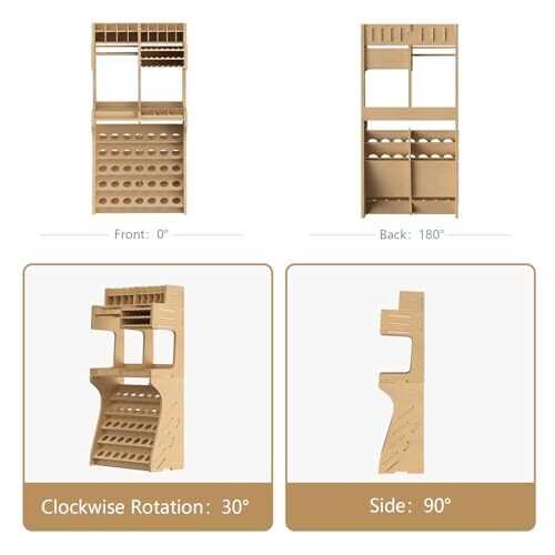 • Supports multiple paint brands and bottle sizes, enabling organized storage of paints in a compact footprint.