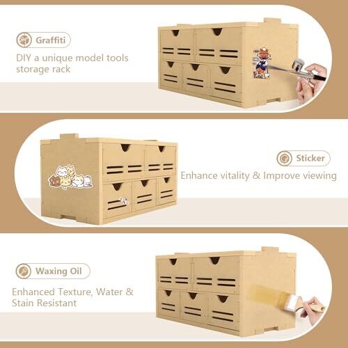 Bucasso GK2 Tool Storage Rack offers a tidy wooden paint organizer with five accessible drawers for tweezers, glue, paints, and small parts. Its MDF construction is eco-friendly, modular with GK series, and easy to assemble for daily modeling tasks.