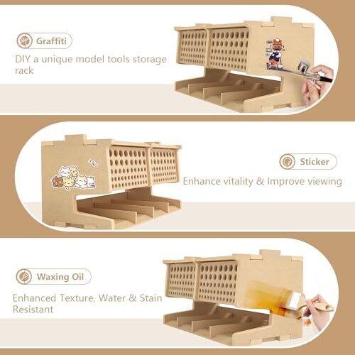 • Elevate your crafting workspace with the Bucasso GK6 wooden model kit tool storage rack – a stylish and functional organizer that keeps brushes, pencils, files and small tools neatly accessible.