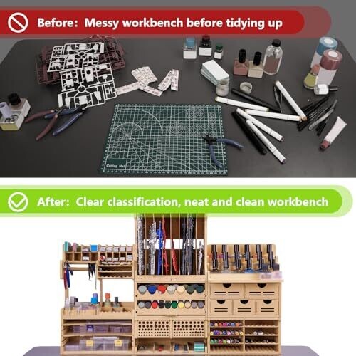 • Constructed from eco-friendly MDF, the unit offers a warm, natural wood aesthetic that complements hobby spaces while providing sturdy, durable storage.