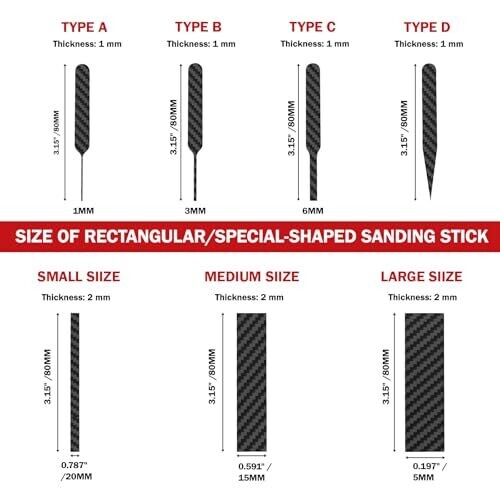 • Hubest 7 pcs Carbon Fiber Sanding Sticks – 5/15/20mm Plates and Irregular Bits