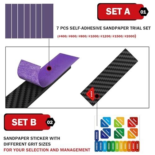 • Includes sanding paper stickers with different grit sizes for selection and organization; sanding paper itself is not included in the set.