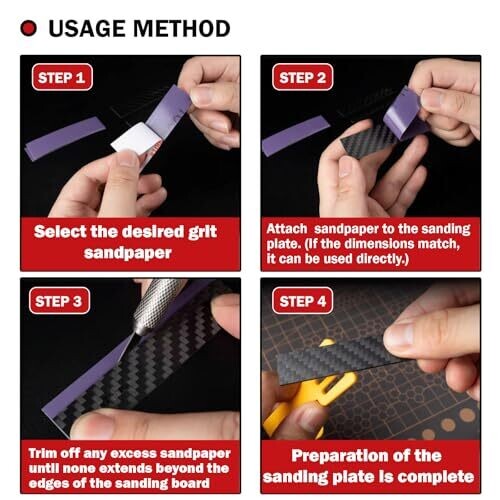 • Self-adhesive sanding sheets are required; cut to plate size, remove backing, and adhere to plates for sanding.