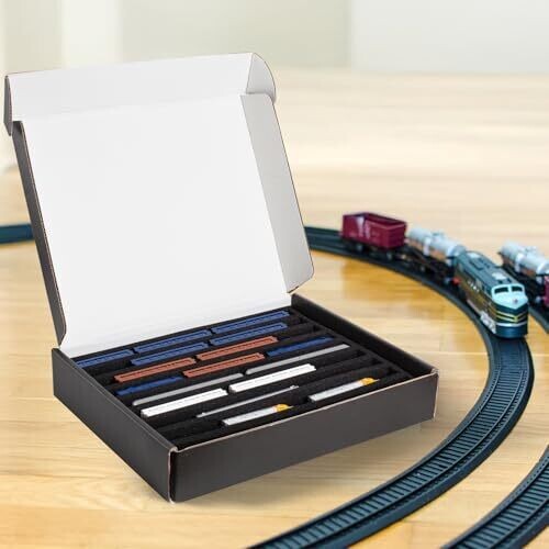 Marketing-focused storage solution that keeps N gauge locomotives, wagons, and vehicles neatly organized in 9 vertical slots. Durable, lightweight construction with protective foam padding, space-saving design, and versatile use for trains, miniatures, figurines, and small accessories.