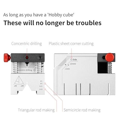 • includes a scale slider and precise alignment capabilities for plastic rods within a range suitable for repeatable drilling in craft and engineering tasks.
