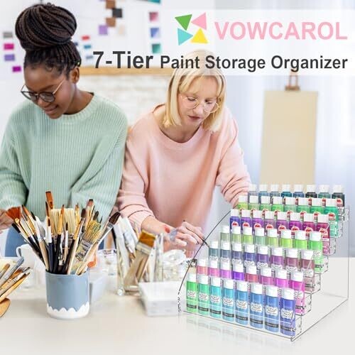 • Vowcarol Clear Acrylic Paint Organizer 7-Tier - Craft Paint Holder