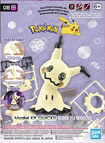 Bandai Hobby Kit Quick!! 08 Mimikyu is a snap-together Pokémon model that arrives ready to display. No tools, glue, or paint needed—just assemble, and enjoy a premium colored figure perfect for collectors and fans.