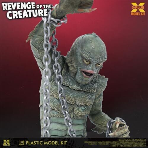 エクスプラスの1:8スケール レベンジ・オブ・ザ・クリーチャー モデルキット。高精密ディテールと美観を両立したビジュアル展示用キットで、クラシック怪獣モンスターの雰囲気を再現します。ディスプレイ性の高いパッケージとカラー表現。