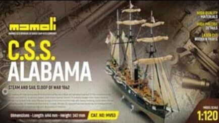 • Experience the legacy of maritime history with the Dusek-Mamoli Mamoli MV53 CSS Alabama plank-on-bulkhead ship model kit.