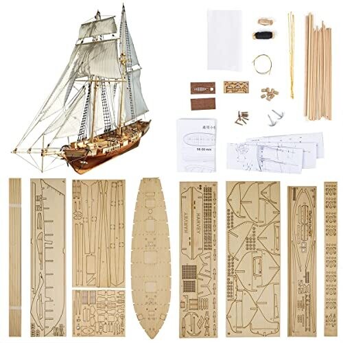 • GAWEGM Ship Model Kits 1:96 Scale Antique Ship Harvey 1847 Wooden Sailboat DIY