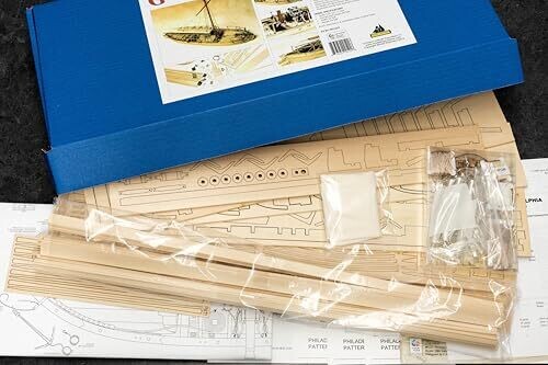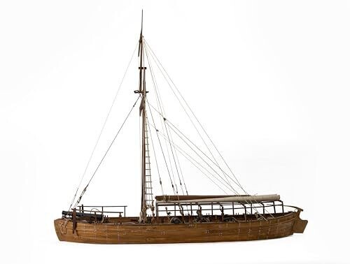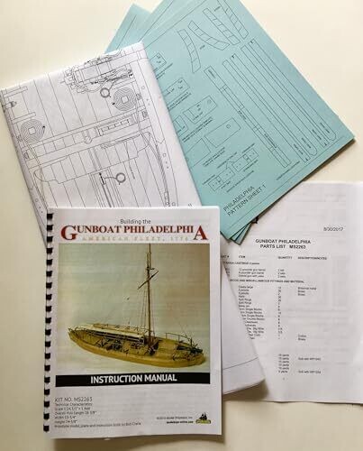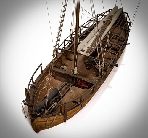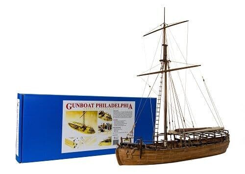 A precise 1:24 scale wooden model kit of the Gunboat Philadelphia, used during the American Revolutionary War. Includes planked hull, fittings, and detailed instructions for an intermediate-level builder seeking historical accuracy.