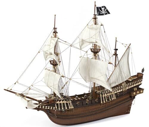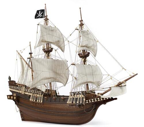 • Occre Buccaneer of the Caribbean wooden model ship kit at a captivating 1:100 scale—perfect for budding builders and seasoned hobbyists alike.