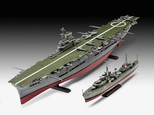 Bring history to life with a 1:72 Revell model of HMS Ark Royal and a Tribal-class destroyer. Includes eight Fairey Fulmar aircraft, a display stand, and durable plastic parts for ages 10 and up, offering hours of hands-on display-worthy fun.
