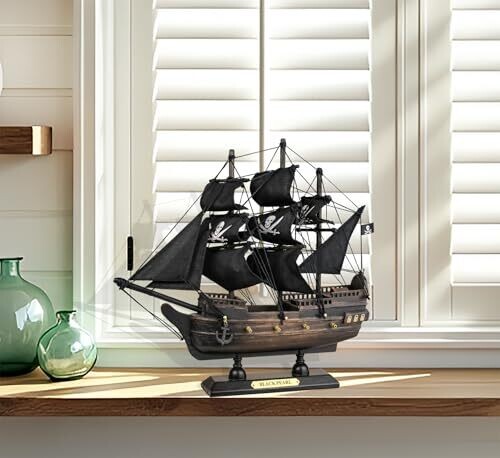 • SAILINGSTORY Black Pearl Pirate Ship Model – 10-Inch Handcrafted Decor