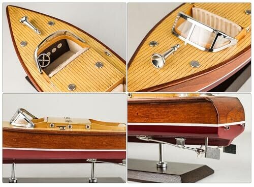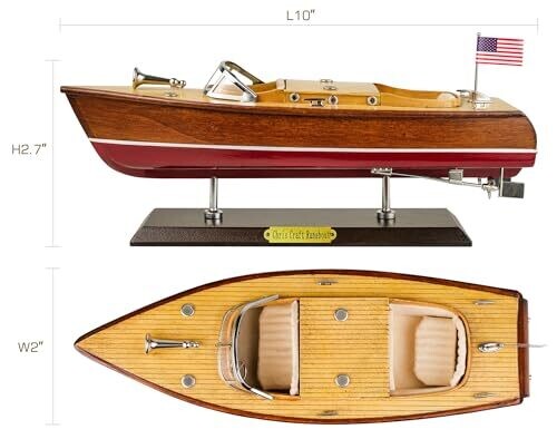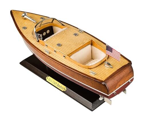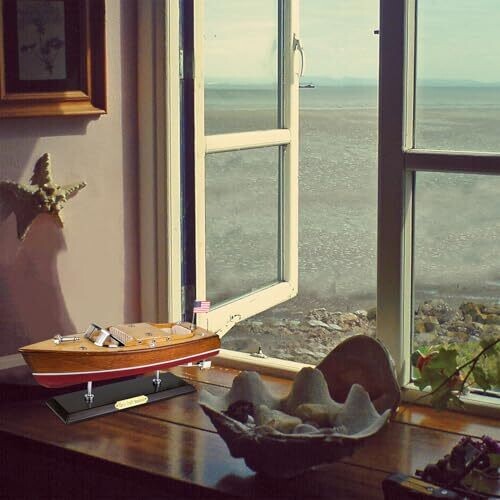 • Capture the timeless elegance of a classic Chris-Craft Runabout with this handcrafted wooden speedboat model.