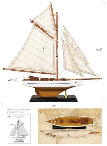 • Handcrafted solid pine hull with hand-stitched sails and rigging for an authentic, nautical look.