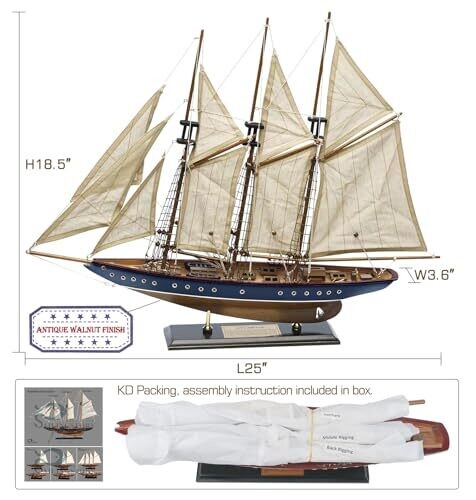 Be the first to review “SAILINGSTORY Wooden Sailboat Model – 24-Inch Schooner Atlantic 1:60, Blue & Walnut” Cancel reply