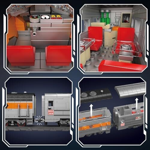 • Openable carriage interiors reveal intricate details, while magnetic connections keep cars linked for easy setup.