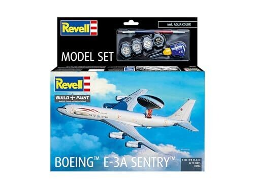 Premium 1:144 scale kit of the AWACS E-3A Sentry by Revell. Unbuilt and unpainted plastic kit with essential accessories for beginners and seasoned builders, delivering authentic aviation detail and a compact display-ready model.