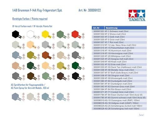 • 1 x 1/48 scale Grumman F-14A Tomcat Late Launch Model Kit, paper flight deck sheet, two crew figures