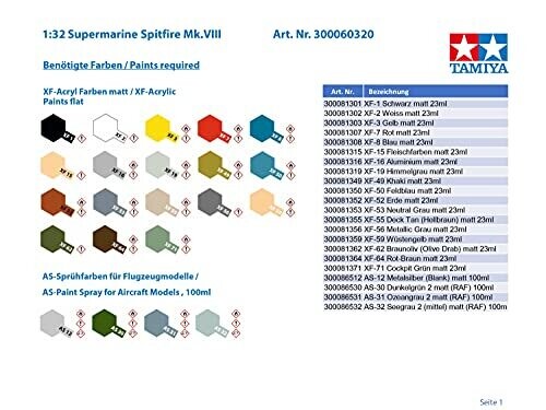 • Tamiya Spitfire MK.viii 1:32 Scale Model Kit – Premium Display