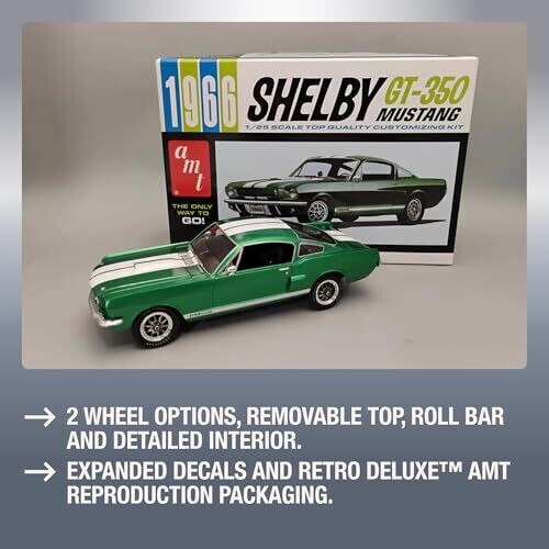 • AMT 1966 Mustang GT-350 1:25 Scale Model Kit — a marketing-focused, highly detailed plastic model kit designed for hobbyists who love classic American muscle cars.