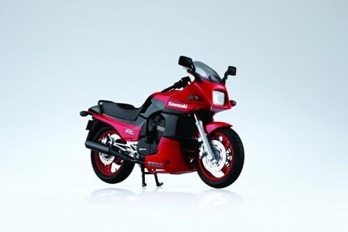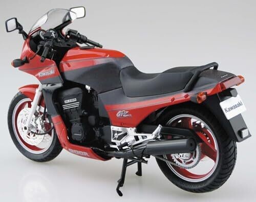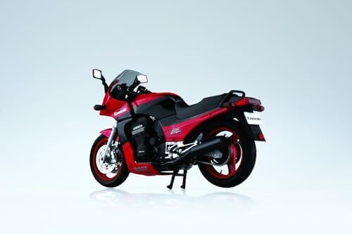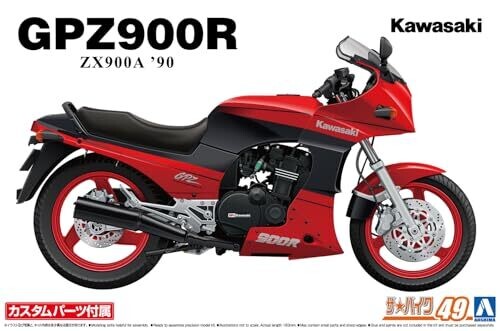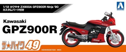 Aoshima's 1/12 scale kit recreates the Kawasaki ZX900A GPZ900R Ninja 90, featuring custom parts for authentic detailing. Includes numbered parts, decals, and instructions to build a stylish retro sport bike model suitable for display.